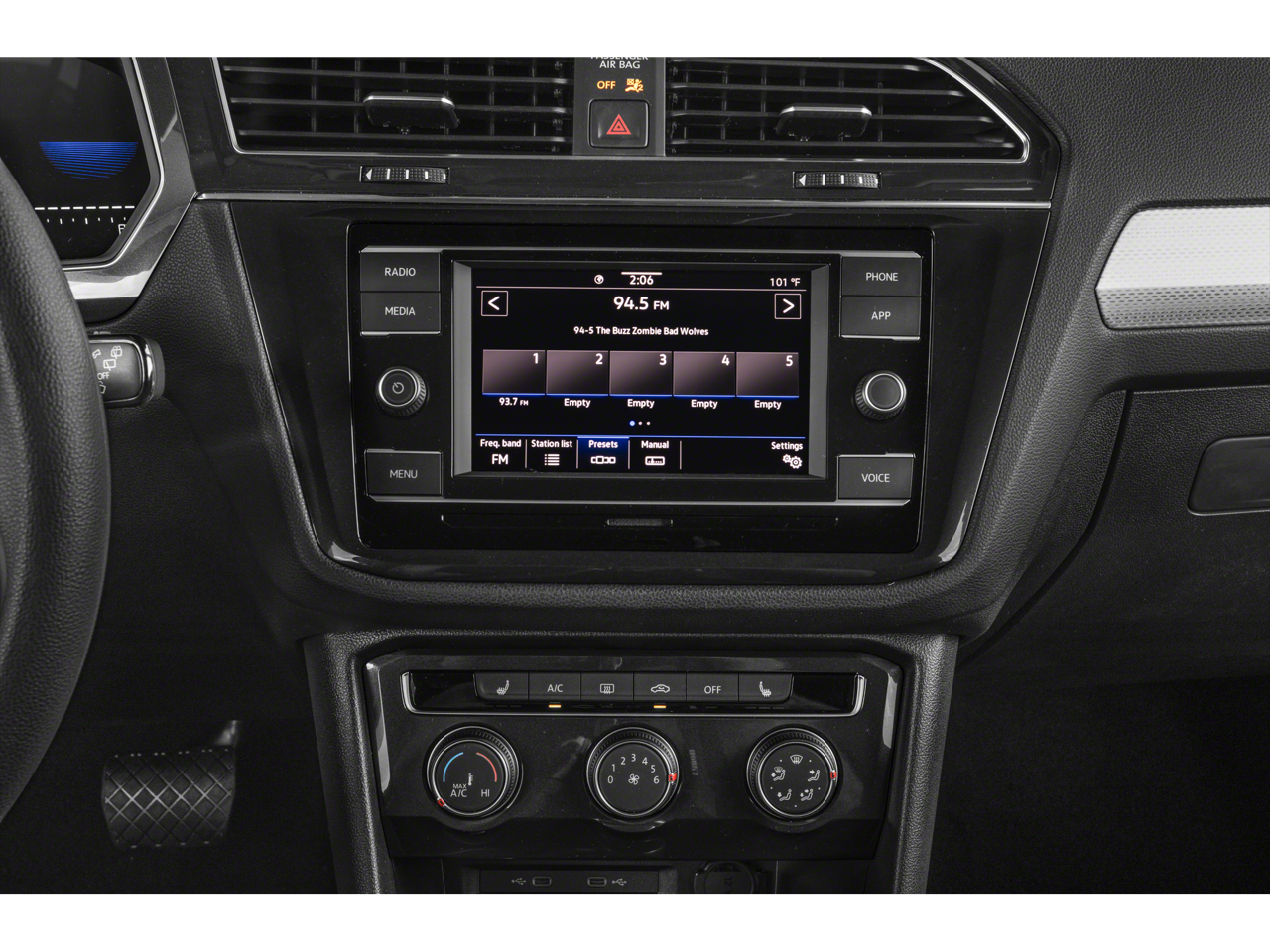 - Radio: MIB3 Composition Media AM/FM/HD -inc: 8" touchscreen, WMA/MP3/FLAC player w/USB-C, 6-speaker sound system, capability for in-vehicle 4G LTE enabled Wi-Fi (cellular data plan required; includes limited trial), capability for VW Car-Net services (capabilities for certain services vary; requires enrollment or subscription), Bluetooth connectivity (for compatible devices), SiriusXM w/360L (w/3-month free trial subscription; 360L services require acceptance of Car-Net terms), App-Connect smartphone integration (w/Apple CarPlay, Android Auto and MirrorLink) via USB, Wireless App-Connect smartphone integration (for compatible devices) w/multi-phone pairing capability and 45W fast charging (for compatible mobile phones and accessories) via USB in first and second rows
